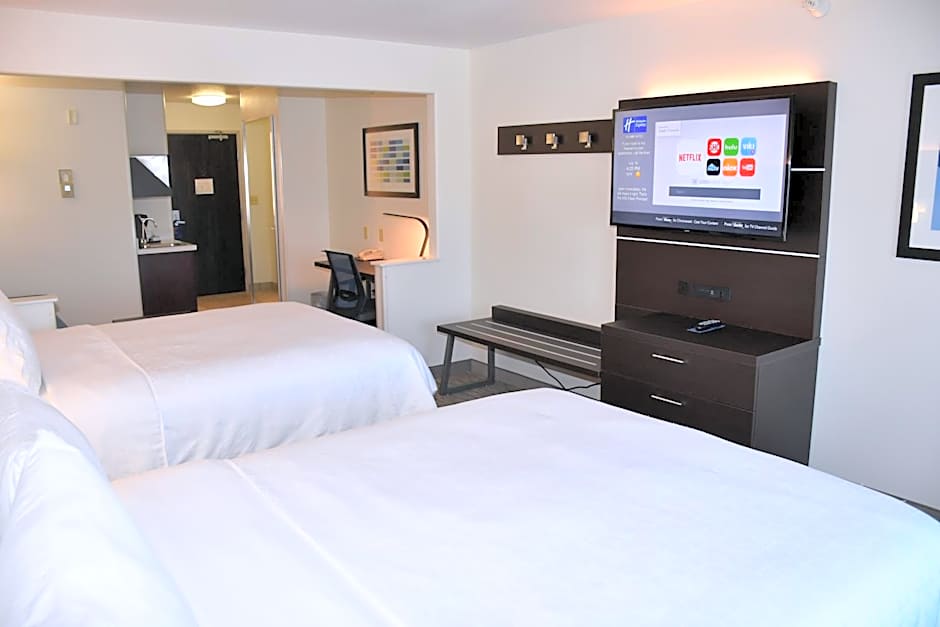 Satellite TV is featured in this suite. A seating area, microwave, and small fridge are also provided.